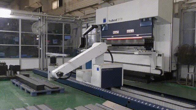 可實現遠程編程控制、自動上料、自動折彎、自動下料、堆砌產品等工作區全程無人化生產操作??梢?4小時不間斷工作,折彎形變的精度在0.1mm以內,節省操作人員4名,工作效率提升300%以上。
