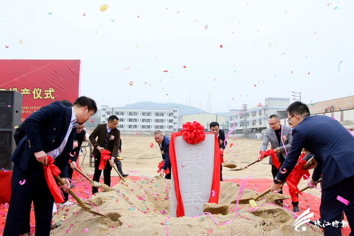 現(xiàn)場(chǎng),領(lǐng)導(dǎo)嘉賓還在德展智能制造項(xiàng)目現(xiàn)場(chǎng)進(jìn)行奠基儀式。