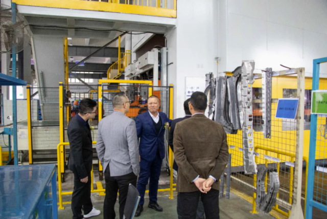 蒞臨的領導嘉賓參觀了德展的生產車間及辦公區域,佛山市德展精工集團董事長高耀庭同行,并向他們詳細介紹德展當前的生產情況。