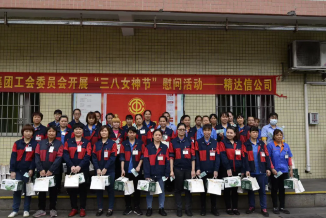 女員工齊聚一堂,欣喜接過工會(huì)送上的禮品及慰問金。大家臉上流露著燦爛的笑容,紛紛對(duì)集團(tuán)準(zhǔn)備的驚喜點(diǎn)贊。